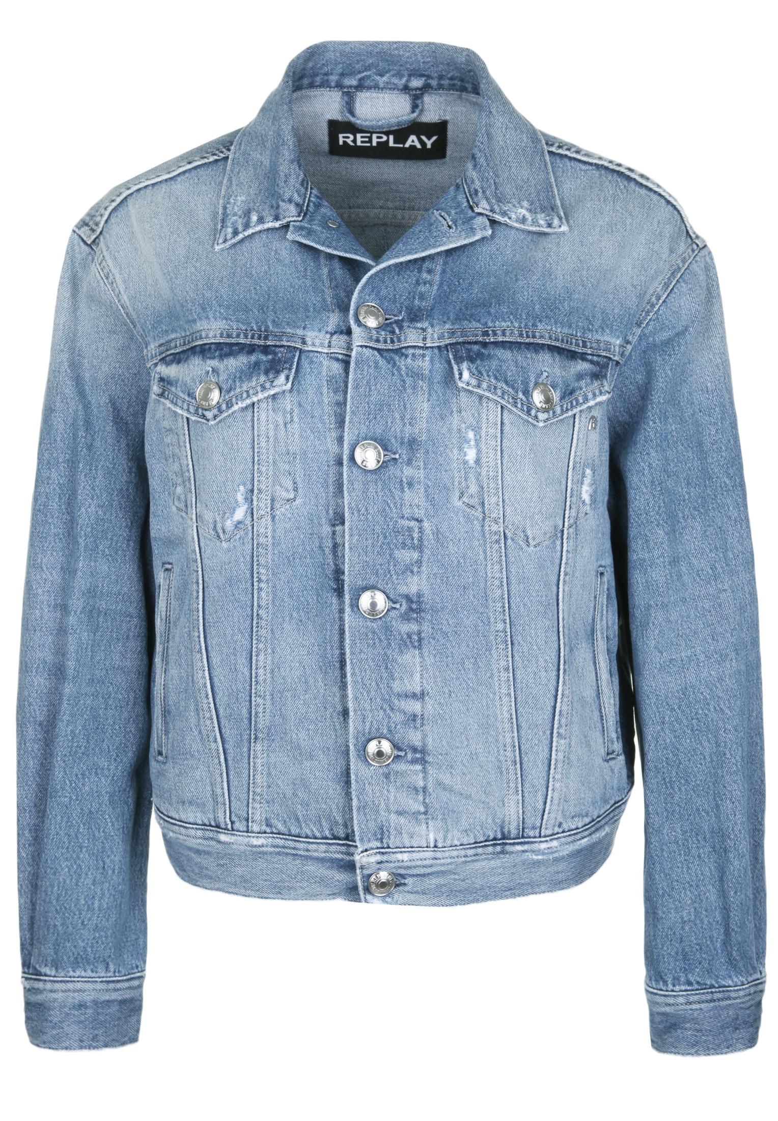 Replay Mit Glitzer Logo Jeansjacke Damen Blau Im Online Shop Von Sportscheck Kaufen