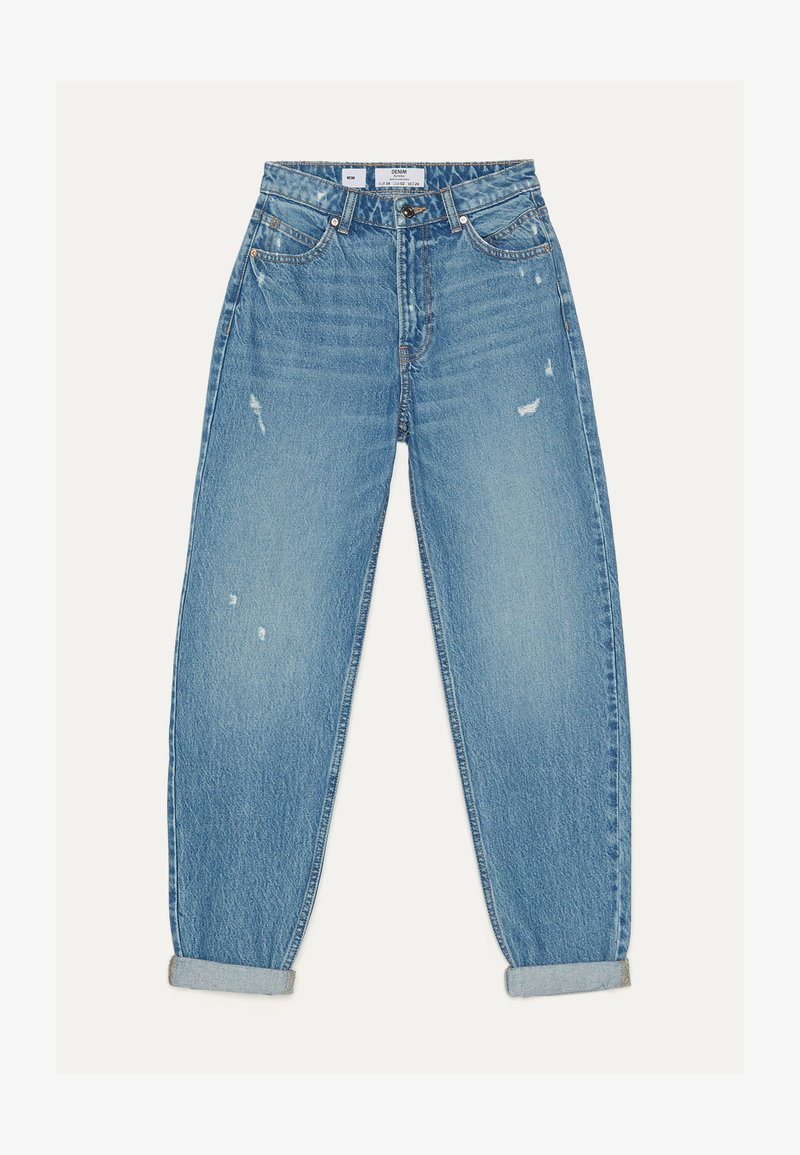 Stylische MomJeans mit hohem Bund Das Modell im klassischen FivePocketStyle hat einen bequemen Formbund mit Gürtelschlaufen Dichter Stoff aus reiner Baumwolle bietet ein angenehmes Tragegefühl und hohen Komfort Trendige MomJeans sitzen passgenau und stehen vielen Figurtypen Tragen Sie sie zu Tops und TShirts, Hemden und Pullovern. FivePocketJeans mit hohem Bund In verwaschener Optik Mit Reißverschluss und Metallknopf vorne MOMFITJEANS Details MEERBLAU 8197/232 FivePocketJeans mit hohem Bund In verwaschener Optik Mit Reißverschluss und Metallknopf vorne Mehr anzeigen Weniger anzeigen JOIN LIFE Care for fiber 100 % Biobaumwolle. Bershka MOM Jeans Straight Leg light blue/hellblau für 19,99 € () versandkostenfrei bei Zalando bestellen.