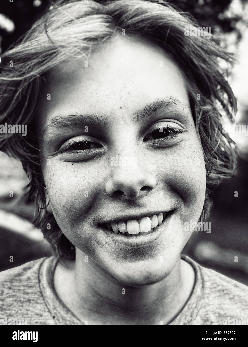Jugendliche Junge Glucklich Portrat Sommer Aussen Teenager Jungen Kurzhaar Frisur Lachen Freundlich Ausdruck Stimmung Positiv Stockfotografie Alamy