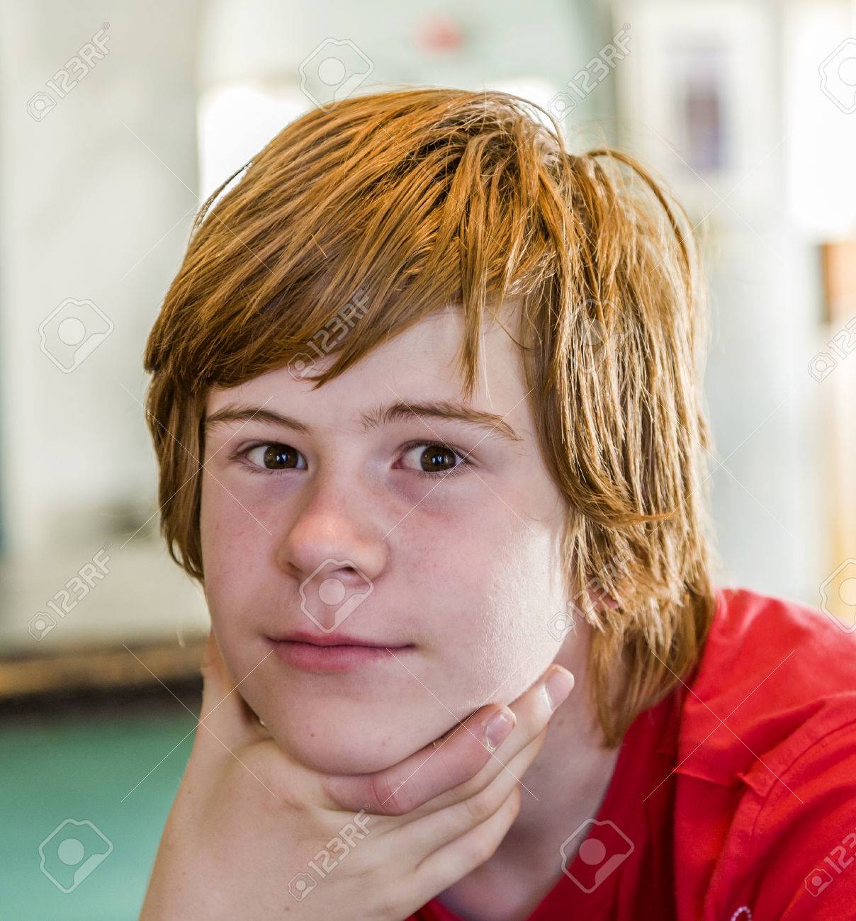 Portrat Der Jungen Teenager Jungen Mit Langen Roten Haaren Lizenzfreie Fotos Bilder Und Stock Fotografie Image