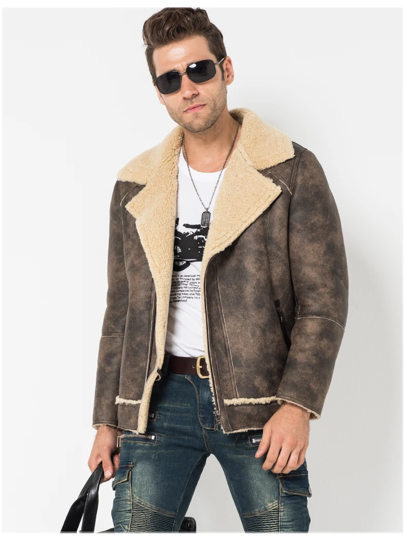Pria Jaket Kulit Domba Shearling Mantel Sepeda Motor Mantel Bulu Penerbang Jaket Parka Jaket Penerbangan B2 Jacket Sheepskin Jacket Jacketjacket Aviator Aliexpress