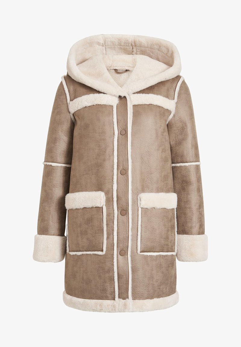 Vila Vimelba Faux Fur Shearling Hood Jac Wollmantel Klassischer Mantel Simply Taupe Birch Faux Fur Taupe Zalando De