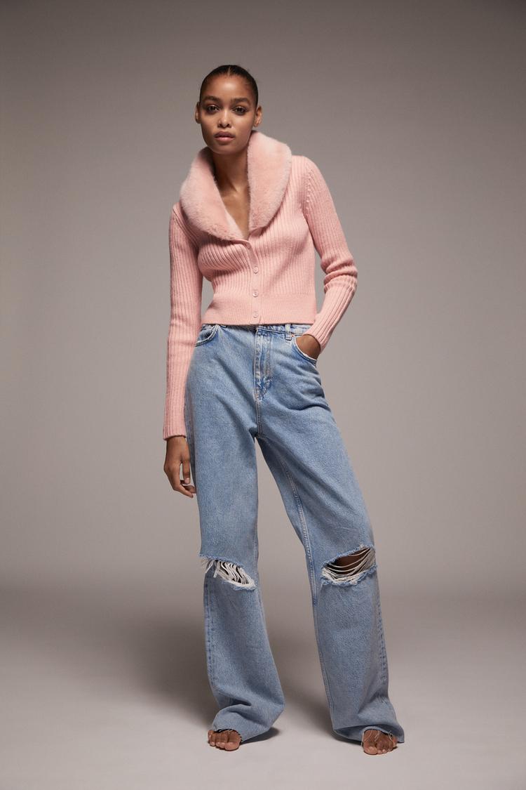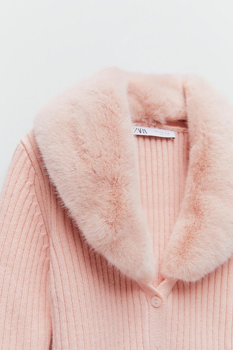 Cardigan In Maglia Con Pelliccia Sintetica Zara Italia Italy