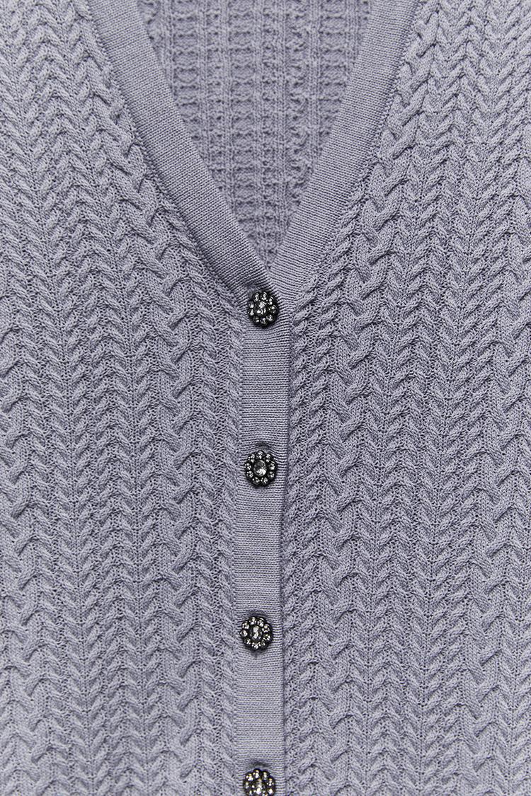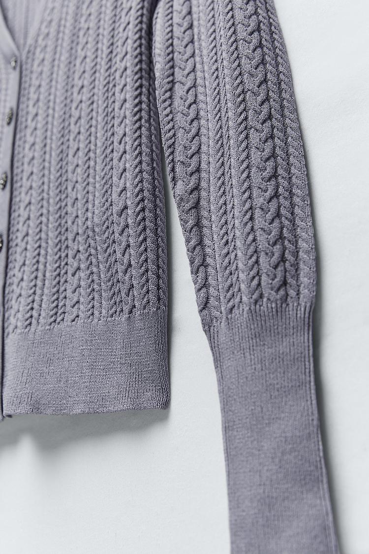 Cable Knit Cardigan With Rhinestone Buttons Zara Lebanon