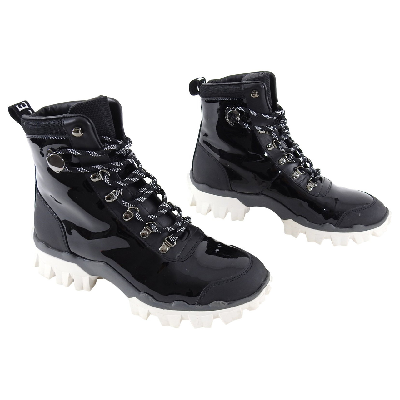Moncler Helis Black Patent Lace Up Boots With White Track Sole 8 Leprix