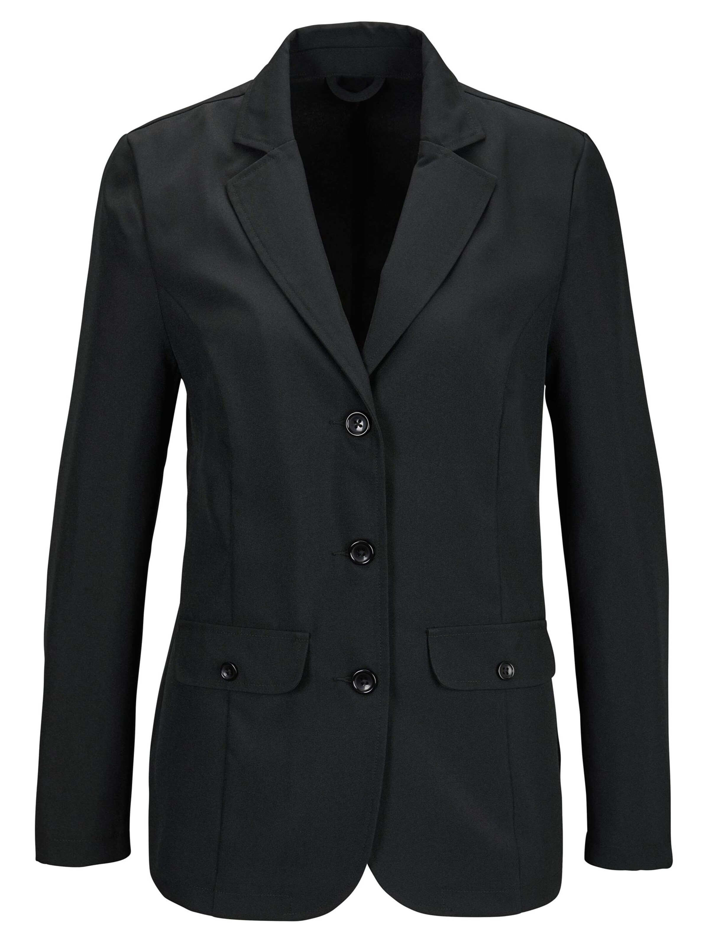Produktinformationen "Damen LangBlazer, Premium, regular, schwarz" Zwei Leistentaschen, eine ReißverschlussInnentasche und Teilungsnähte im Rücken runden die Funktionalität des schwarzen Blazers ab Ärmel und Rückenschlitze machen den Blazer zum praktischen Alltagsbegeleiter und sorgen für Bewegungsfreiheit.