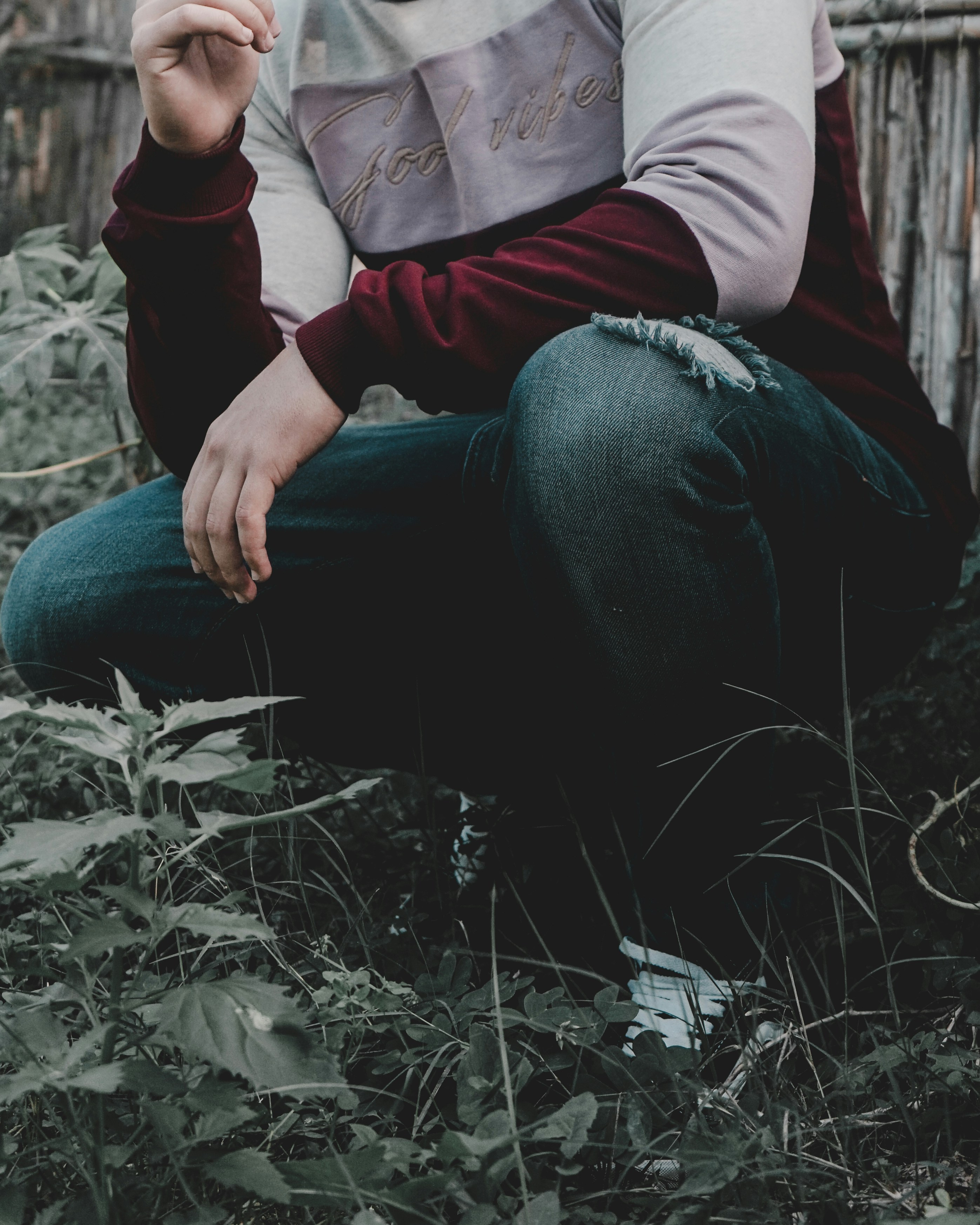 Men S Black And Red Sweater And Black Denim Distressed Jeans Photo Free Person Image On Unsplash