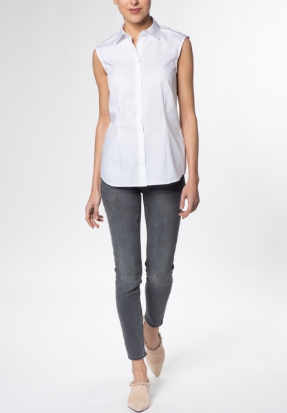 Eterna Modern Bluse Ohne Arm Krageneinsatz Hemdkragen Weiss