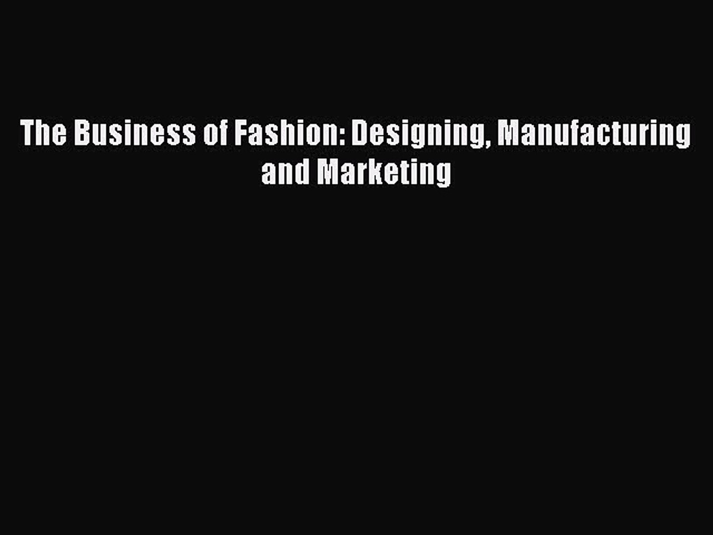 R E A D The Business Of Fashion Designing Manufacturing And Marketing D O W N L O A D Video Dailymotion