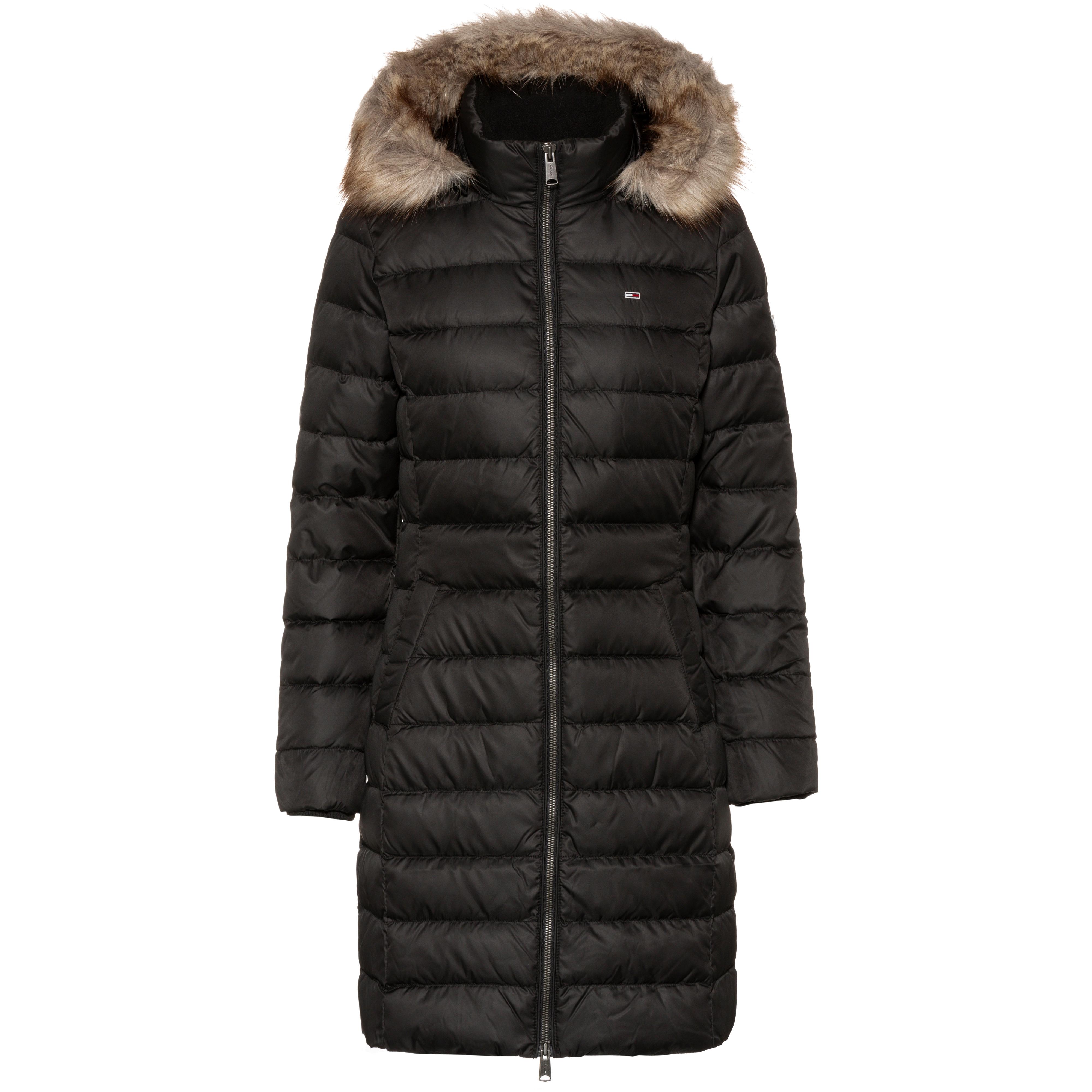 Essential Down Filled Faux Fur Trim Coat Black Tommy Hilfiger
