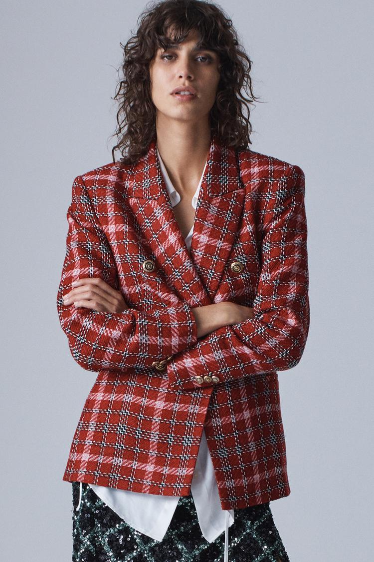 Zara Damen Karierter Blazer Aus Tweed Tartan Mode Blazer Kariert Bekleidung Nahen