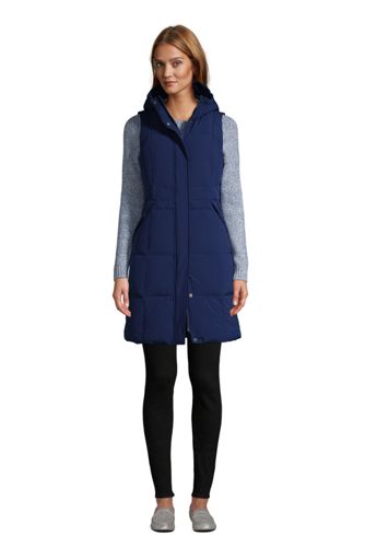 Lange Daunenweste Mit Kapuze Und Stretchkomfort Fur Damen Lands End