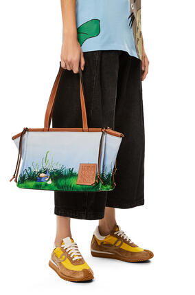 Loewe bag totoro. Jonathan Anderson believes the world needs more imagination and joy today and to help spread that the Loewe Creative Director has teamed with Studio Ghibli to launch a Loewe x My Neighbor Totoro’ capsule collection. The collection in focus Totoro Family Using a unique leather marquetry technique, Loewe’s artisans have brought Studio Ghibli’s characters to some of Loewe’s most celebrated accessories, fusing the craft of the illustrator with the skills of the leather artisan. A multifunctional bag with supple side panels that release to change its shape Looped straps allow the bag to be worn in multiple ways This mini version with drawstring sides is from the LOEWE x My Neighbor Totoro capsule collection and crafted in embroidered linen and leather marquetry *Shoulder, crossbody or top handle carry *Detachable and adjustable strap *Interior hook closure.