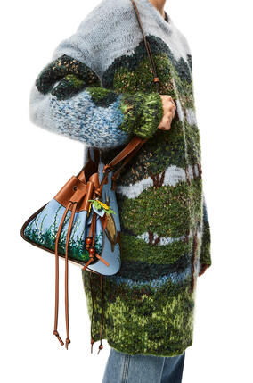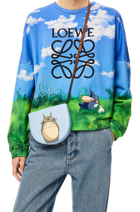 A multifunctional bag with supple side panels that release to change its shape Looped straps allow the bag to be worn in multiple ways This mini version with drawstring sides is from the LOEWE x My Neighbor Totoro capsule collection and crafted in embroidered linen and leather marquetry *Shoulder, crossbody or top handle carry *Detachable and adjustable strap *Interior hook closure. Loewe x My Neighbor Totoro capsule collection 21 may only have started, but one of the most anticipated collabs is already out in the open Studio Ghibli ’s 19 masterpiece My Neighbor Totoro is now made into Loewe 's readytowear leather goods. Loewe x My Neighbor Totoro Capsule Collection Posted on January 12, 21 A limitededition capsule collection of bags, readytowear and accessories celebrating Studio Ghibli’s 19 masterpiece.