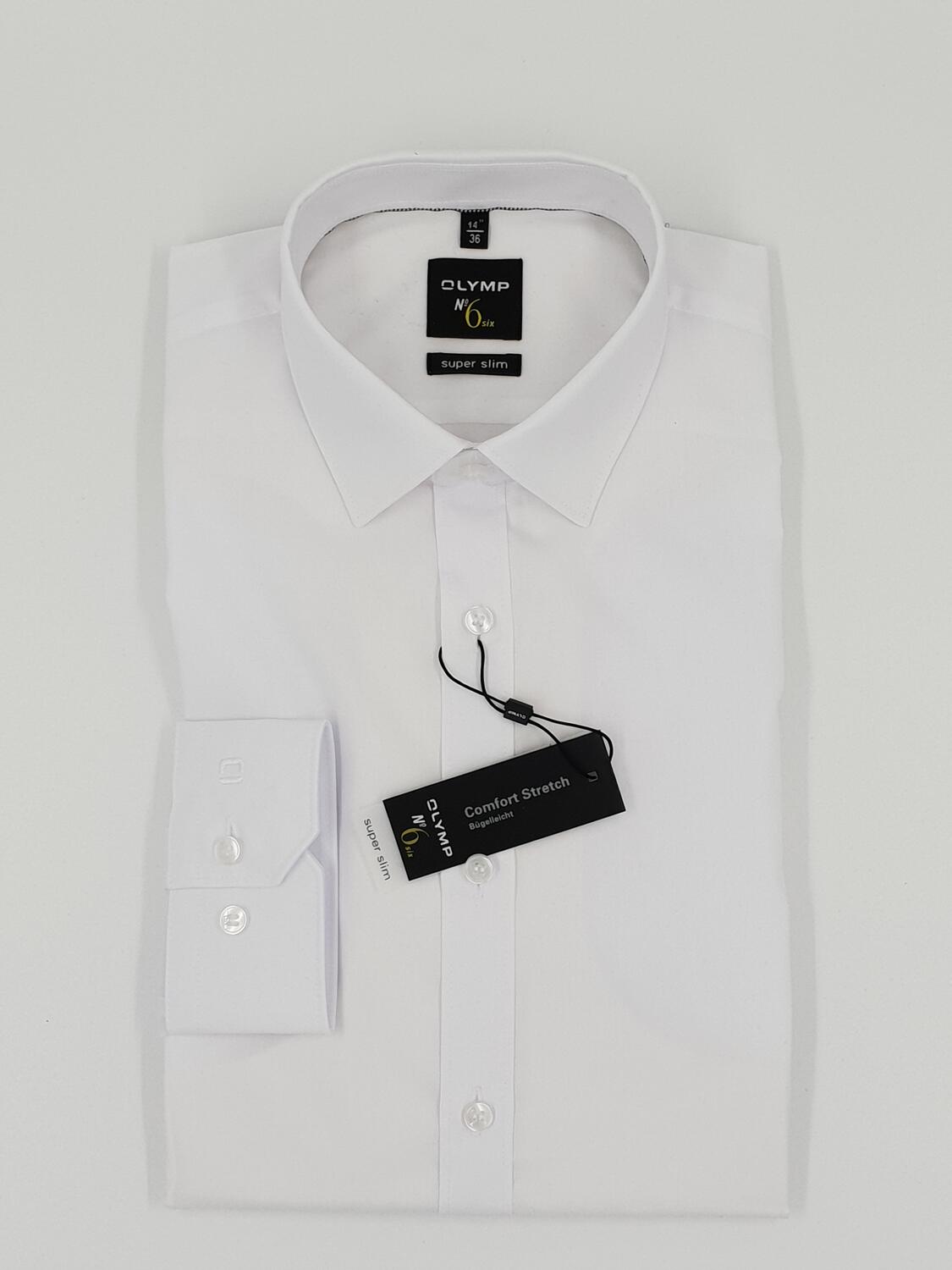 Hochwertiges Olymp No Six Super Slim Hemd In Der Farbe Weiss Einfarbig Der Armeltyp Ist Langarm 64cm Das Hemd Ist Bugelleicht Und Ist Ohne Brusttasche Der Stoff Ist Ein Feines Popeline Gewebe